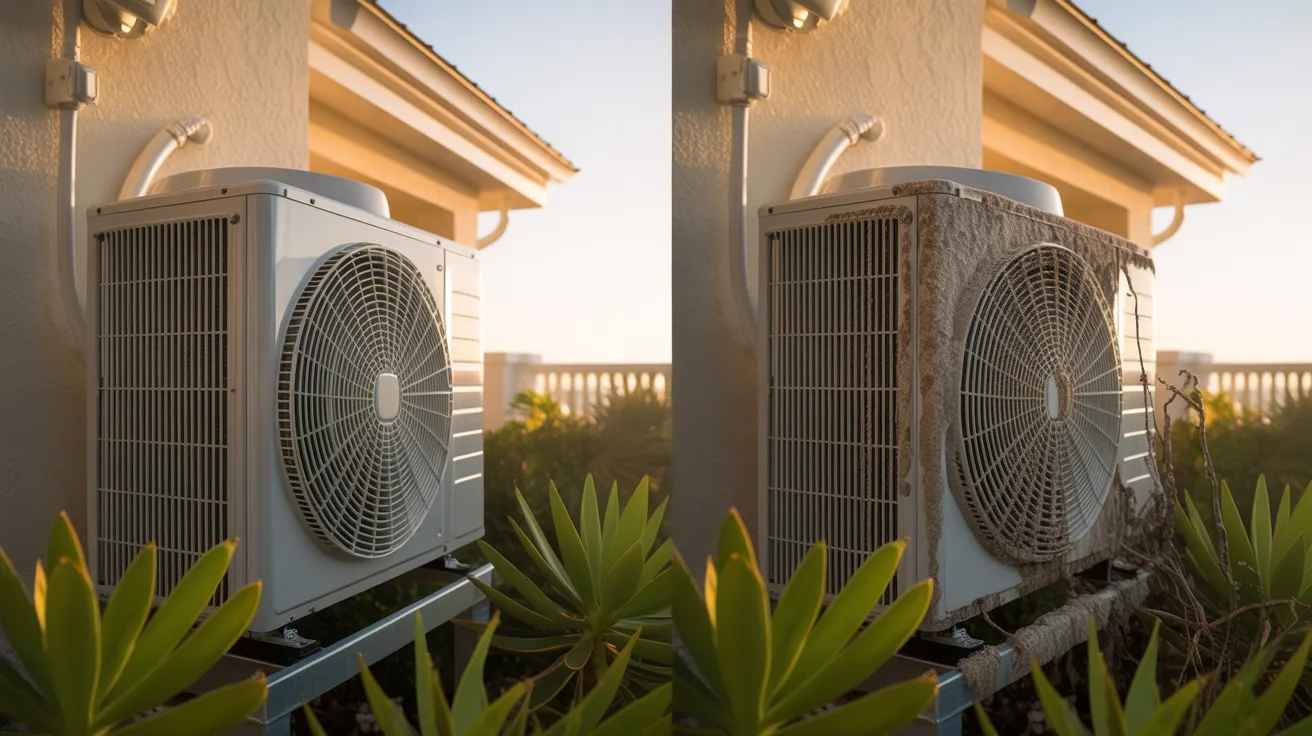 واشطف الملفات بالماء العذب منخفض الضغط، وحافظ على الميل الصحيح للمكثفات والفخاخ النظيفة لمنع الفيضان والمخاطر الكهربائية. **مؤشرات تدل على حاجة مكيفك لصيانة عاجلة** الظروف الساحلية لا تقلل من عمر الجهاز فقط، بل تنتج أيضًا علامات تحذير لا يمكنك تجاهلها. إذا لاحظت تبريدًا غير متساوٍ من غرفة إلى أخرى، فقد يكون نظامك يعاني من تدفق هواء مقيد، أو مخمدات فاشلة، أو انخفاض في المبرد، أو محرك منفاخ ضعيف. يشير الهواء الدافئ القادم من المخرج تحت الحمل إلى أعطال في الضاغط أو المبرد. تشير الدورات القصيرة المتكررة إلى مشكلات في المستشعر، أو ملفات متسخة، أو وحدة كبيرة الحجم. الروائح الغريبة مهمة: تشير الرائحة الحامضة